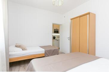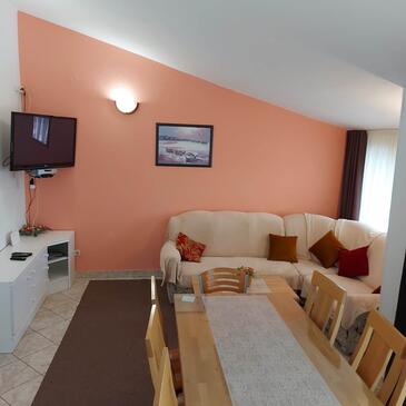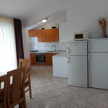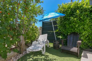 Ferienwohnung bietet Platz für 8 Gäste. Die Betten sind in Schlafzimmern, die es 4 gibt, innerhalb einer Gesamtfläche von 107m2, angeordnet. Die Gäste haben eine eigene Terrasse zur Verfügung, auf der sie in warmen Sommernächten genießen können. Das Apartment bietet Meerblick. Es ist erlaubt, Speisen auf dem Gemeinschafts-Grill vorzubereiten.