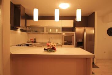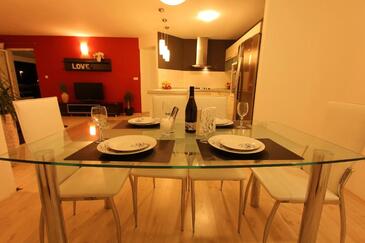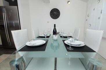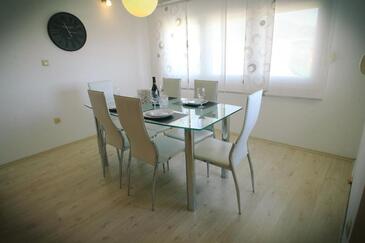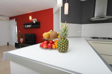 Ferienwohnung bietet Platz für 6 Gäste. Die Betten sind in Schlafzimmern, die es 3 gibt, innerhalb einer Gesamtfläche von 105m2, angeordnet. Die Gäste haben eine eigene Terrasse zur Verfügung, auf der sie in warmen Sommernächten genießen können. Das Apartment bietet Meerblick. Es ist erlaubt, Speisen auf dem Gemeinschafts-Grill vorzubereiten.