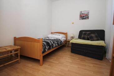 Ferienwohnung bietet Platz für 6 Gäste. Die Betten sind in Schlafzimmern, die es 3 gibt, innerhalb einer Gesamtfläche von 105m2, angeordnet. Die Gäste haben eine eigene Terrasse zur Verfügung, auf der sie in warmen Sommernächten genießen können. Das Apartment bietet Meerblick. Es ist erlaubt, Speisen auf dem Gemeinschafts-Grill vorzubereiten.