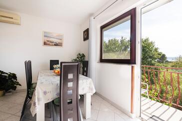Ferienwohnung bietet Platz für 6 Gäste. Die Betten sind in Schlafzimmern, die es 3 gibt, innerhalb einer Gesamtfläche von 80m2, angeordnet. Die Gäste haben einen eigenen Balkon zur Verfügung, auf der sie in warmen Sommernächten genießen können. Das Apartment bietet Meerblick. Es ist erlaubt, Speisen auf dem Gemeinschafts-Grill vorzubereiten.
