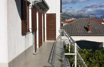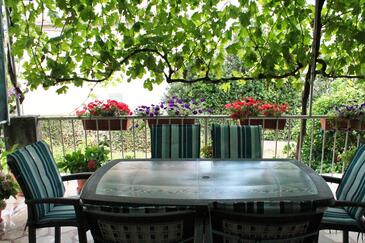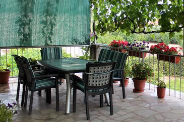 Ferienwohnung bietet Platz für 12 Gäste. Die Betten sind in Schlafzimmern, die es 5 gibt, innerhalb einer Gesamtfläche von 124m2, angeordnet. Die Gäste haben eine eigene Terrasse zur Verfügung, auf der sie in warmen Sommernächten genießen können. Es ist erlaubt, Speisen auf dem Gemeinschafts-Grill vorzubereiten.
