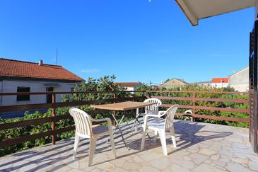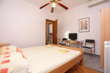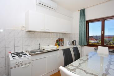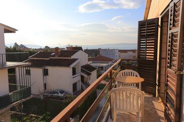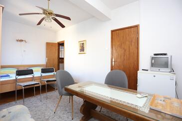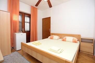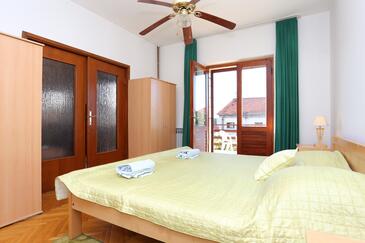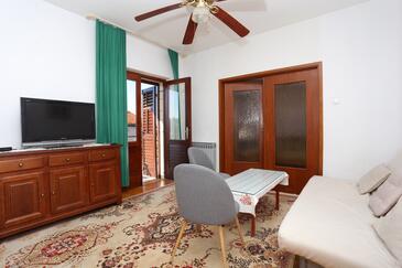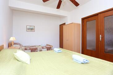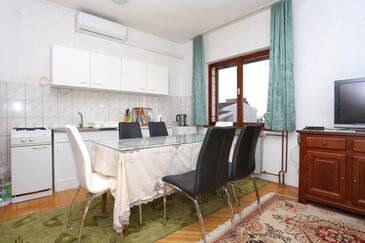 Ferienwohnung bietet Platz für 8 Gäste. Die Betten sind in Schlafzimmern, die es 3 gibt, und in Wohnzimmer, innerhalb einer Gesamtfläche von 82m2, angeordnet. Die Gäste haben einen eigenen Balkon zur Verfügung, auf der sie in warmen Sommernächten genießen können. Das Apartment bietet Meerblick. Es ist erlaubt, Speisen auf dem Gemeinschafts-Grill vorzubereiten. In der Unterkunftseinheit besteht die Möglichkeit des Mitbringens von Haustieren gegen Aufpreis. Eingang in die Unterkunftseinheit ist nicht mit einer Tür von anderen Räumen des Objektes getrennt.