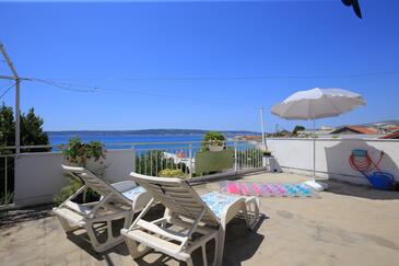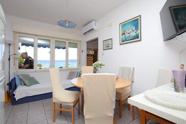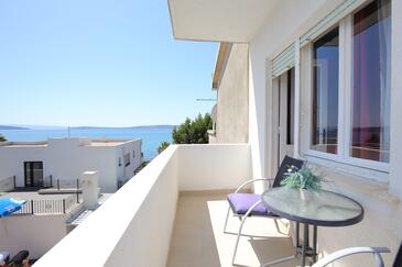 Ferienwohnung bietet Platz für 5 Gäste. Die Betten sind in Schlafzimmern, die es 2 gibt, und in Wohnzimmer, innerhalb einer Gesamtfläche von 48m2, angeordnet. Die Gäste haben eine eigene Terrasse zur Verfügung, auf der sie in warmen Sommernächten genießen können. Das Apartment bietet Meerblick. Es ist erlaubt, Speisen auf dem Gemeinschafts-Grill vorzubereiten. In der Unterkunftseinheit besteht die Möglichkeit des Mitbringens von Haustieren gegen Aufpreis.