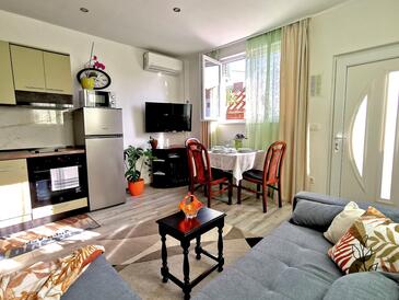 Ferienwohnung bietet Platz für 3 Gäste. Die Betten sind in Schlafzimmern, die es 1 gibt, und in Wohnzimmer, innerhalb einer Gesamtfläche von 30m2, angeordnet. Die Gäste haben eine eigene Terrasse zur Verfügung, auf der sie in warmen Sommernächten genießen können. Das Apartment bietet Meerblick. Für vollen Genuss und Entspannung gibt es einen privaten Grill für Gäste dieser Unterkunft. Unterkunftseinheit hat Räume, die von dem Rest der Einheit abgetrennt werden.