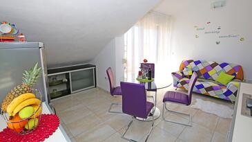 Ferienwohnung bietet Platz für 5 Gäste. Die Betten sind in Schlafzimmern, die es 3 gibt, innerhalb einer Gesamtfläche von 68m2, angeordnet. Die Gäste haben einen eigenen Balkon zur Verfügung, auf der sie in warmen Sommernächten genießen können. Das Apartment bietet Meerblick.