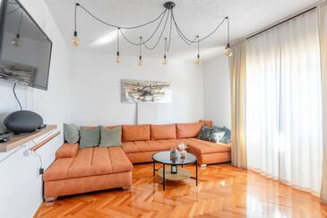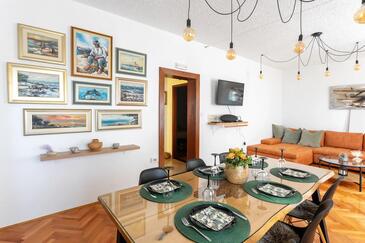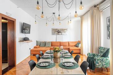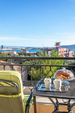 Ferienwohnung bietet Platz für 6 Gäste. Die Betten sind in Schlafzimmern, die es 2 gibt, und in Wohnzimmer, innerhalb einer Gesamtfläche von 82m2, angeordnet. Die Gäste haben einen eigenen Balkon zur Verfügung, auf der sie in warmen Sommernächten genießen können. Das Apartment bietet Meerblick. Während ihres Aufenthalts können sich Gäste im privaten Schwimmbad entspannen.