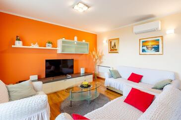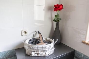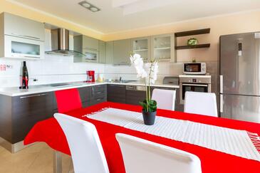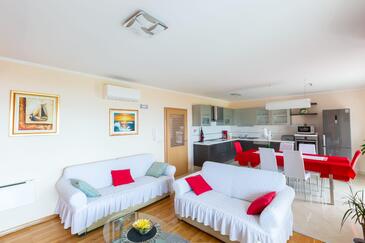 Ferienwohnung bietet Platz für 7 Gäste. Die Betten sind in Schlafzimmern, die es 3 gibt, innerhalb einer Gesamtfläche von 95m2, angeordnet. Die Gäste haben eine eigene Terrasse zur Verfügung, auf der sie in warmen Sommernächten genießen können. Das Apartment bietet Meerblick. Es ist erlaubt, Speisen auf dem Gemeinschafts-Grill vorzubereiten.