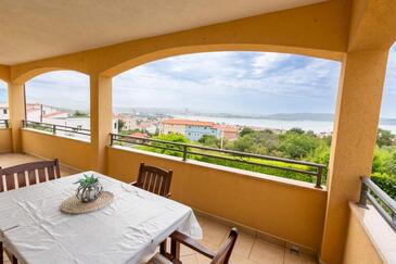 Ferienwohnung bietet Platz für 7 Gäste. Die Betten sind in Schlafzimmern, die es 3 gibt, innerhalb einer Gesamtfläche von 95m2, angeordnet. Die Gäste haben eine eigene Terrasse zur Verfügung, auf der sie in warmen Sommernächten genießen können. Das Apartment bietet Meerblick. Es ist erlaubt, Speisen auf dem Gemeinschafts-Grill vorzubereiten.