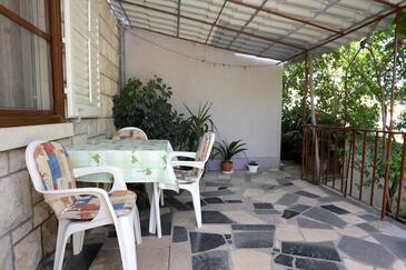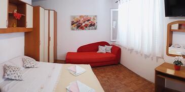 Ferienwohnung bietet Platz für 3 Gäste. Die Betten sind in Schlafzimmern, die es 1 gibt, innerhalb einer Gesamtfläche von 46m2, angeordnet. Die Gäste haben eine eigene Terrasse zur Verfügung, auf der sie in warmen Sommernächten genießen können. Es ist erlaubt, Speisen auf dem Gemeinschafts-Grill vorzubereiten.