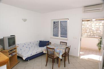 Ferienwohnung bietet Platz für 4 Gäste. Die Betten sind in Schlafzimmern, die es 1 gibt, und in Wohnzimmer, innerhalb einer Gesamtfläche von 35m2, angeordnet. Die Gäste haben eine eigene Terrasse zur Verfügung, auf der sie in warmen Sommernächten genießen können. Das Apartment bietet Meerblick. Es ist erlaubt, Speisen auf dem Gemeinschafts-Grill vorzubereiten. In der Unterkunftseinheit besteht die Möglichkeit des Mitbringens von Haustieren gegen Aufpreis.