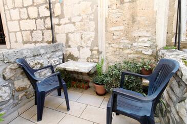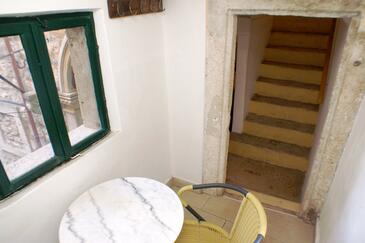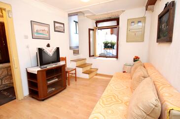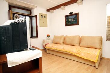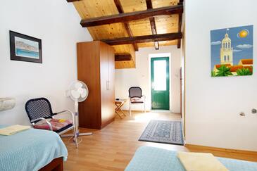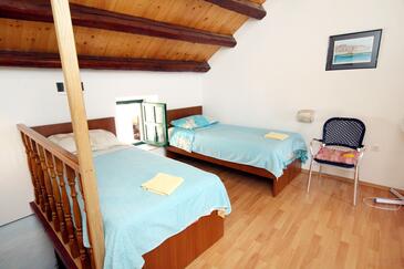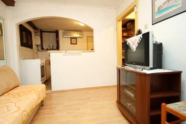 Haus bietet Platz für 6 Gäste. Die Betten sind in Schlafzimmern, die es 3 gibt, innerhalb einer Gesamtfläche von 93m2, angeordnet. Die Gäste haben eine eigene Terrasse zur Verfügung, auf der sie in warmen Sommernächten genießen können. Das Haus bietet Meerblick. In der Unterkunftseinheit besteht die Möglichkeit des Mitbringens von Haustieren gegen Aufpreis.