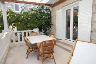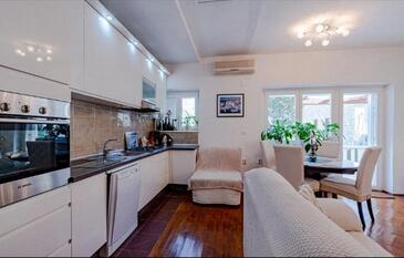 Ferienwohnung bietet Platz für 3 Gäste. Die Betten sind in Schlafzimmern, die es 1 gibt, und in Wohnzimmer, innerhalb einer Gesamtfläche von 61m2, angeordnet. Die Gäste haben eine eigene Terrasse zur Verfügung, auf der sie in warmen Sommernächten genießen können. Das Apartment bietet Meerblick. Es ist erlaubt, Speisen auf dem Gemeinschafts-Grill vorzubereiten.