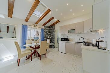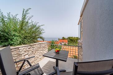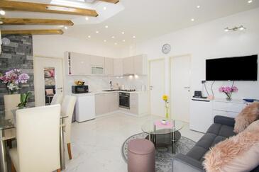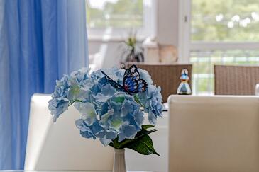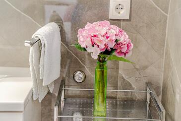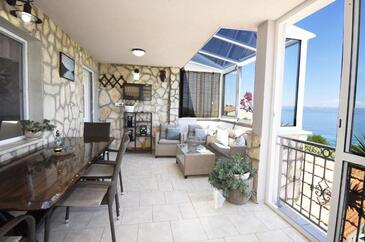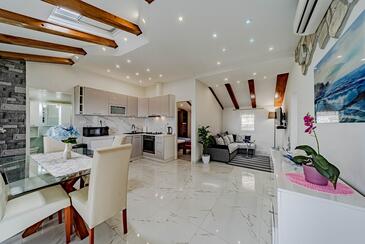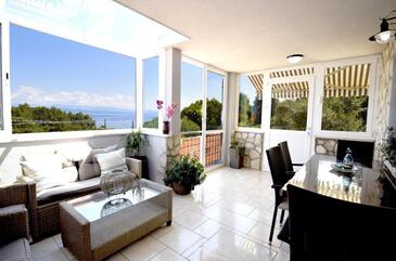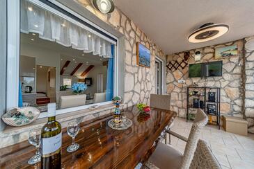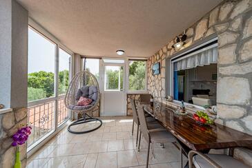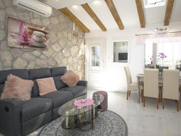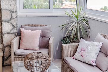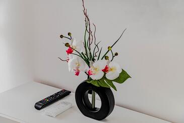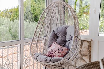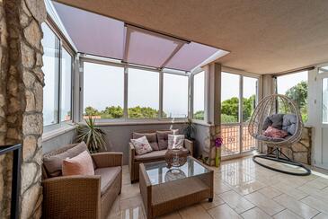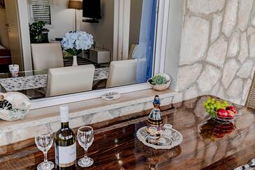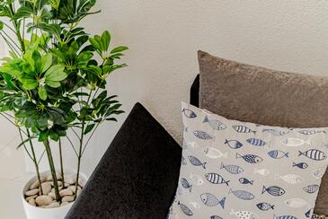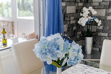 Haus bietet Platz für 4 Gäste. Die Betten sind in Schlafzimmern, die es 2 gibt, innerhalb einer Gesamtfläche von 86m2, angeordnet. Die Gäste haben eine eigene Terrasse zur Verfügung, auf der sie in warmen Sommernächten genießen können. Das Haus bietet Meerblick. Es ist erlaubt, Speisen auf dem Gemeinschafts-Grill vorzubereiten. In der Unterkunftseinheit besteht die Möglichkeit des Mitbringens von Haustieren gegen Aufpreis.