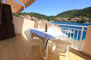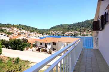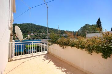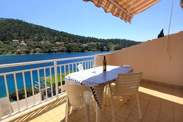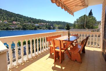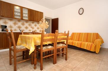 Ferienwohnung bietet Platz für 8 Gäste. Die Betten sind in Schlafzimmern, die es 4 gibt, innerhalb einer Gesamtfläche von 96m2, angeordnet. Die Gäste haben eine eigene Terrasse zur Verfügung, auf der sie in warmen Sommernächten genießen können. Das Apartment bietet Meerblick. Es ist erlaubt, Speisen auf dem Gemeinschafts-Grill vorzubereiten.