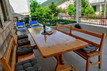 Ferienwohnung bietet Platz für 6 Gäste. Die Betten sind in Schlafzimmern, die es 2 gibt, und in Wohnzimmer, innerhalb einer Gesamtfläche von 74m2, angeordnet. Die Gäste haben eine eigene Terrasse zur Verfügung, auf der sie in warmen Sommernächten genießen können. Es ist erlaubt, Speisen auf dem Gemeinschafts-Grill vorzubereiten.