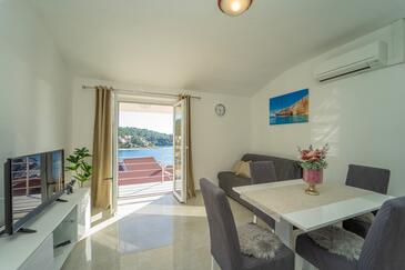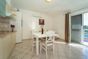 Haus bietet Platz für 12 Gäste. Die Betten sind in Schlafzimmern, die es 5 gibt, und in Wohnzimmer, innerhalb einer Gesamtfläche von 158m2, angeordnet. Die Gäste haben eine eigene Terrasse zur Verfügung, auf der sie in warmen Sommernächten genießen können. Das Haus bietet Meerblick. Für vollen Genuss und Entspannung gibt es einen privaten Grill für Gäste dieser Unterkunft. Während ihres Aufenthalts können sich Gäste im privaten Schwimmbad entspannen. Räume der gebuchten Unterkunftseinheit werden nicht in eine Ganze verbunden.