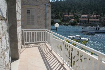 Ferienwohnung bietet Platz für 5 Gäste. Die Betten sind in Schlafzimmern, die es 2 gibt, und in Esszimmer, innerhalb einer Gesamtfläche von 57m2, angeordnet. Die Gäste haben eine eigene Terrasse zur Verfügung, auf der sie in warmen Sommernächten genießen können. Das Apartment bietet Meerblick. Es ist erlaubt, Speisen auf dem Gemeinschafts-Grill vorzubereiten.