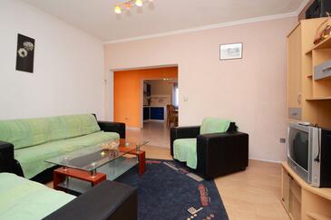 Ferienwohnung bietet Platz für 5 Gäste. Die Betten sind in Schlafzimmern, die es 3 gibt, innerhalb einer Gesamtfläche von 77m2, angeordnet. Die Gäste haben eine eigene Terrasse zur Verfügung, auf der sie in warmen Sommernächten genießen können. Das Apartment bietet Meerblick.