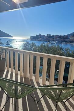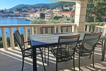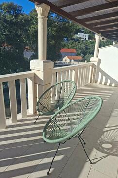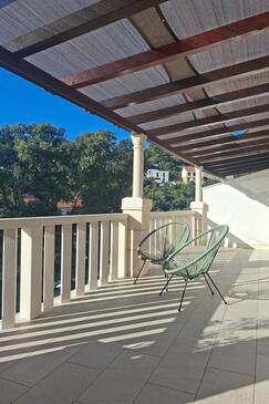 Ferienwohnung bietet Platz für 5 Gäste. Die Betten sind in Schlafzimmern, die es 3 gibt, innerhalb einer Gesamtfläche von 77m2, angeordnet. Die Gäste haben eine eigene Terrasse zur Verfügung, auf der sie in warmen Sommernächten genießen können. Das Apartment bietet Meerblick.
