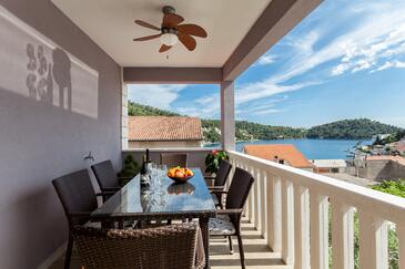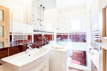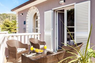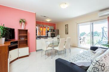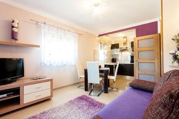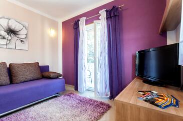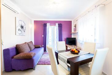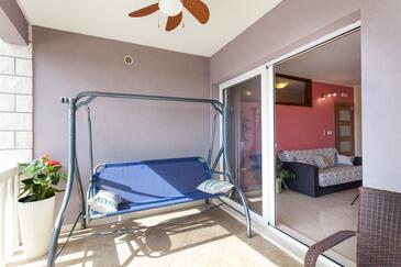 Ferienwohnung bietet Platz für 10 Gäste. Die Betten sind in Schlafzimmern, die es 3 gibt, und in Wohnzimmer, innerhalb einer Gesamtfläche von 101m2, angeordnet. Die Gäste haben eine eigene Terrasse zur Verfügung, auf der sie in warmen Sommernächten genießen können. Das Apartment bietet Meerblick. Es ist erlaubt, Speisen auf dem Gemeinschafts-Grill vorzubereiten.