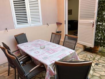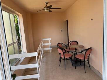 Ferienwohnung bietet Platz für 6 Gäste. Die Betten sind in Schlafzimmern, die es 3 gibt, innerhalb einer Gesamtfläche von 78m2, angeordnet. Die Gäste haben eine eigene Terrasse zur Verfügung, auf der sie in warmen Sommernächten genießen können. Das Apartment bietet Meerblick. Es ist erlaubt, Speisen auf dem Gemeinschafts-Grill vorzubereiten.