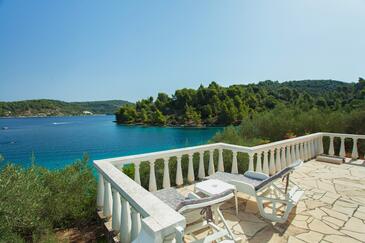 Haus bietet Platz für 4 Gäste. Die Betten sind in Schlafzimmern, die es 2 gibt, innerhalb einer Gesamtfläche von 50m2, angeordnet. Die Gäste haben eine eigene Terrasse zur Verfügung, auf der sie in warmen Sommernächten genießen können. Das Haus bietet Meerblick. Für vollen Genuss und Entspannung gibt es einen privaten Grill für Gäste dieser Unterkunft.