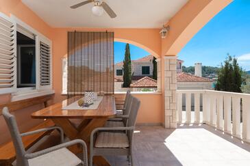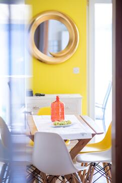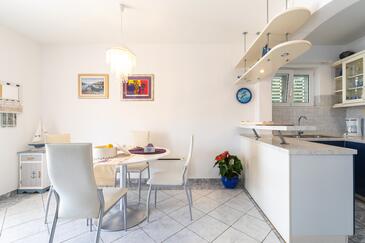 Ferienwohnung bietet Platz für 6 Gäste. Die Betten sind in Schlafzimmern, die es 3 gibt, innerhalb einer Gesamtfläche von 53m2, angeordnet. Die Gäste haben eine eigene Terrasse zur Verfügung, auf der sie in warmen Sommernächten genießen können. Das Apartment bietet Meerblick. Für vollen Genuss und Entspannung gibt es einen privaten Grill für Gäste dieser Unterkunft. Unterkunftseinheit hat Räume, die von dem Rest der Einheit abgetrennt werden.