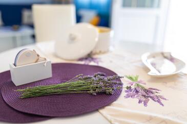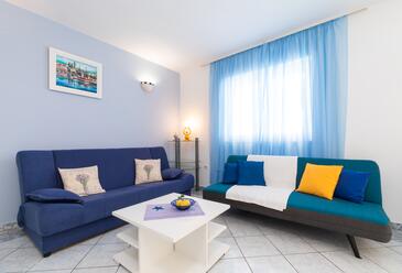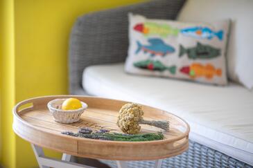 Ferienwohnung bietet Platz für 6 Gäste. Die Betten sind in Schlafzimmern, die es 3 gibt, innerhalb einer Gesamtfläche von 53m2, angeordnet. Die Gäste haben eine eigene Terrasse zur Verfügung, auf der sie in warmen Sommernächten genießen können. Das Apartment bietet Meerblick. Für vollen Genuss und Entspannung gibt es einen privaten Grill für Gäste dieser Unterkunft. Unterkunftseinheit hat Räume, die von dem Rest der Einheit abgetrennt werden.