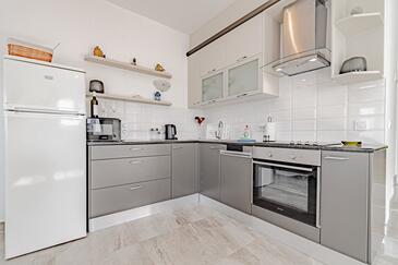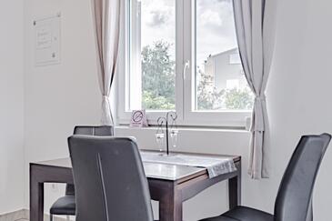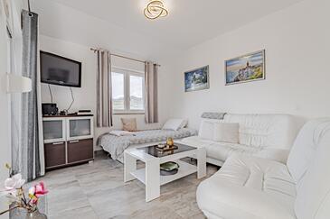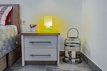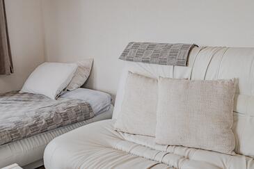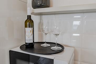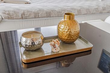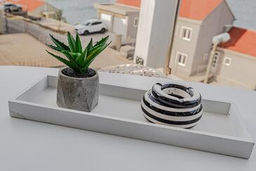 Ferienwohnung bietet Platz für 3 Gäste. Die Betten sind in Schlafzimmern, die es 1 gibt, und in Wohnzimmer, innerhalb einer Gesamtfläche von 43m2, angeordnet. Die Gäste haben eine eigene Terrasse zur Verfügung, auf der sie in warmen Sommernächten genießen können. Das Apartment bietet Meerblick. Es ist erlaubt, Speisen auf dem Gemeinschafts-Grill vorzubereiten.
