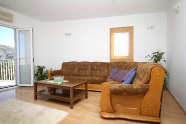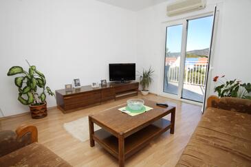 Ferienwohnung bietet Platz für 6 Gäste. Die Betten sind in Schlafzimmern, die es 3 gibt, innerhalb einer Gesamtfläche von 80m2, angeordnet. Die Gäste haben eine eigene Terrasse zur Verfügung, auf der sie in warmen Sommernächten genießen können. Das Apartment bietet Meerblick. Für vollen Genuss und Entspannung gibt es einen privaten Grill für Gäste dieser Unterkunft.