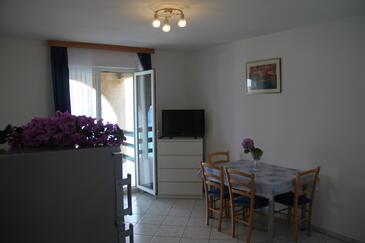 Ferienwohnung bietet Platz für 4 Gäste. Die Betten sind in Schlafzimmern, die es 2 gibt, innerhalb einer Gesamtfläche von 51m2, angeordnet. Die Gäste haben eine eigene Terrasse zur Verfügung, auf der sie in warmen Sommernächten genießen können. Das Apartment bietet Meerblick. Es ist erlaubt, Speisen auf dem Gemeinschafts-Grill vorzubereiten.