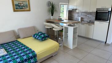 Ferienwohnung bietet Platz für 4 Gäste. Die Betten sind in Schlafzimmern, die es 2 gibt, innerhalb einer Gesamtfläche von 58m2, angeordnet. Die Gäste haben eine eigene Terrasse zur Verfügung, auf der sie in warmen Sommernächten genießen können. Es ist erlaubt, Speisen auf dem Gemeinschafts-Grill vorzubereiten. In der Unterkunftseinheit besteht die Möglichkeit des Mitbringens von Haustieren, und die Dienstleistung ist im Preis der Unterkunft enthalten.