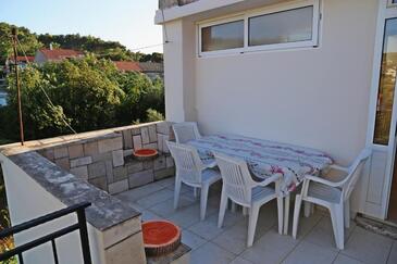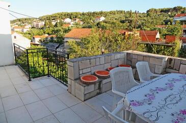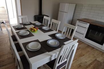 Haus bietet Platz für 8 Gäste. Die Betten sind in Schlafzimmern, die es 4 gibt, innerhalb einer Gesamtfläche von 102m2, angeordnet. Die Gäste haben eine eigene Terrasse zur Verfügung, auf der sie in warmen Sommernächten genießen können.