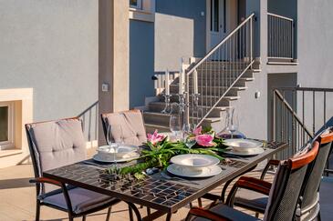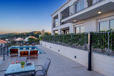 Haus bietet Platz für 8 Gäste. Die Betten sind in Schlafzimmern, die es 4 gibt, innerhalb einer Gesamtfläche von 174m2, angeordnet. Die Gäste haben eine eigene Terrasse zur Verfügung, auf der sie in warmen Sommernächten genießen können. Das Haus bietet Meerblick. Für vollen Genuss und Entspannung gibt es einen privaten Grill für Gäste dieser Unterkunft. Während ihres Aufenthalts können sich Gäste im privaten Schwimmbad entspannen.