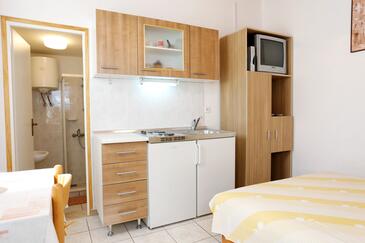 Ferienwohnung bietet Platz für 3 Gäste. Die Betten sind in Schlafzimmern, die es 1 gibt, und in Wohnzimmer, innerhalb einer Gesamtfläche von 26m2, angeordnet. Die Gäste haben eine eigene Terrasse zur Verfügung, auf der sie in warmen Sommernächten genießen können. Das Apartment bietet Meerblick. Es ist erlaubt, Speisen auf dem Gemeinschafts-Grill vorzubereiten. In der Unterkunftseinheit besteht die Möglichkeit des Mitbringens von Haustieren, und die Dienstleistung ist im Preis der Unterkunft enthalten. Durch die Terrasse der gebuchten Unterkunftseinheit gehen auch andere Gäste oder Vermieter.