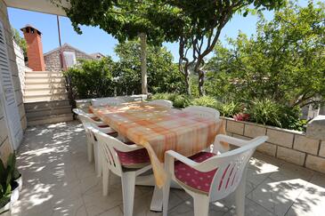 Ferienwohnung bietet Platz für 5 Gäste. Die Betten sind in Schlafzimmern, die es 2 gibt, innerhalb einer Gesamtfläche von 64m2, angeordnet. Die Gäste haben eine eigene Terrasse zur Verfügung, auf der sie in warmen Sommernächten genießen können. Es ist erlaubt, Speisen auf dem Gemeinschafts-Grill vorzubereiten.