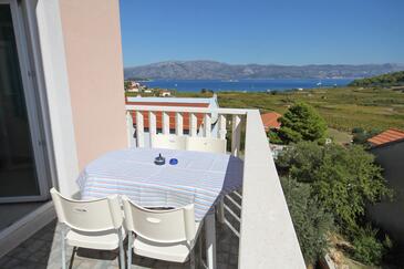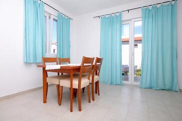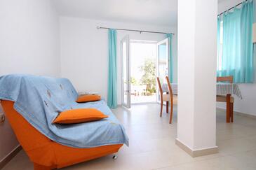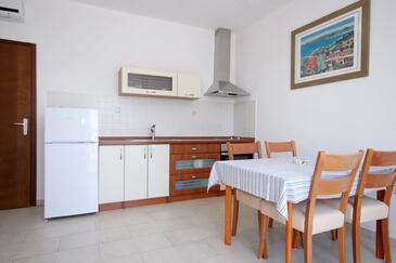 Ferienwohnung bietet Platz für 4 Gäste. Die Betten sind in Schlafzimmern, die es 2 gibt, innerhalb einer Gesamtfläche von 37m2, angeordnet. Die Gäste haben eine eigene Terrasse zur Verfügung, auf der sie in warmen Sommernächten genießen können. Das Apartment bietet Meerblick. Es ist erlaubt, Speisen auf dem Gemeinschafts-Grill vorzubereiten.