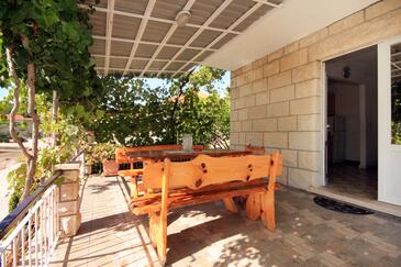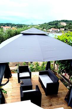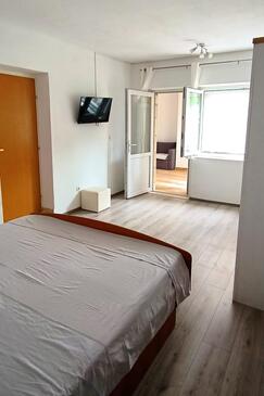 Ferienwohnung bietet Platz für 4 Gäste. Die Betten sind in Schlafzimmern, die es 2 gibt, innerhalb einer Gesamtfläche von 60m2, angeordnet. Die Gäste haben eine eigene Terrasse zur Verfügung, auf der sie in warmen Sommernächten genießen können. Das Apartment bietet Meerblick. Es ist erlaubt, Speisen auf dem Gemeinschafts-Grill vorzubereiten.