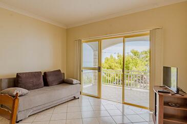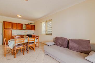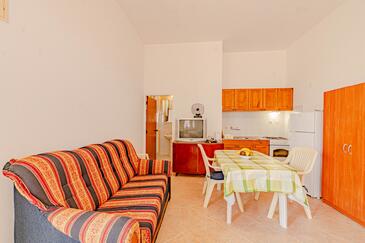Ferienwohnung bietet Platz für 4 Gäste. Die Betten sind in Schlafzimmern, die es 1 gibt, und in Wohnzimmer, innerhalb einer Gesamtfläche von 48m2, angeordnet. Die Gäste haben eine eigene Terrasse zur Verfügung, auf der sie in warmen Sommernächten genießen können. Das Apartment bietet Meerblick. Es ist erlaubt, Speisen auf dem Gemeinschafts-Grill vorzubereiten.