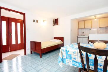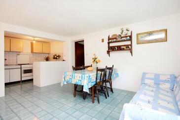 Ferienwohnung bietet Platz für 7 Gäste. Die Betten sind in Schlafzimmern, die es 2 gibt, und in Esszimmer, innerhalb einer Gesamtfläche von 71m2, angeordnet. Die Gäste haben eine eigene Terrasse zur Verfügung, auf der sie in warmen Sommernächten genießen können. Das Apartment bietet Meerblick. Es ist erlaubt, Speisen auf dem Gemeinschafts-Grill vorzubereiten. In der Unterkunftseinheit besteht die Möglichkeit des Mitbringens von Haustieren gegen Aufpreis.