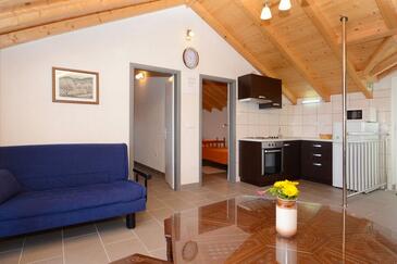 Haus bietet Platz für 8 Gäste. Die Betten sind in Schlafzimmern, die es 4 gibt, innerhalb einer Gesamtfläche von 110m2, angeordnet. Die Gäste haben eine eigene Terrasse zur Verfügung, auf der sie in warmen Sommernächten genießen können. Das Haus bietet Meerblick. Während ihres Aufenthalts können sich Gäste im privaten Schwimmbad entspannen. Räume der gebuchten Unterkunftseinheit werden nicht in eine Ganze verbunden.