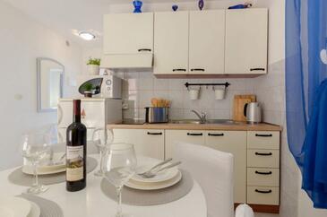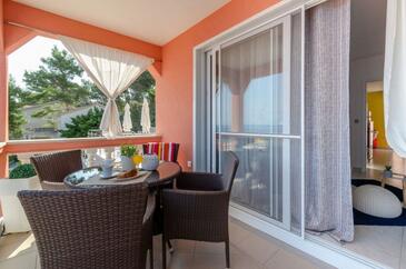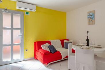 Ferienwohnung bietet Platz für 4 Gäste. Die Betten sind in Schlafzimmern, die es 1 gibt, und in Wohnzimmer, innerhalb einer Gesamtfläche von 35m2, angeordnet. Die Gäste haben einen eigenen Balkon zur Verfügung, auf der sie in warmen Sommernächten genießen können. Das Apartment bietet Meerblick. Es ist erlaubt, Speisen auf dem Gemeinschafts-Grill vorzubereiten.