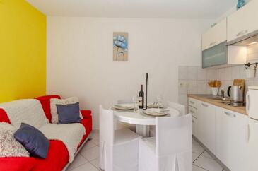 Ferienwohnung bietet Platz für 4 Gäste. Die Betten sind in Schlafzimmern, die es 1 gibt, und in Wohnzimmer, innerhalb einer Gesamtfläche von 35m2, angeordnet. Die Gäste haben einen eigenen Balkon zur Verfügung, auf der sie in warmen Sommernächten genießen können. Das Apartment bietet Meerblick. Es ist erlaubt, Speisen auf dem Gemeinschafts-Grill vorzubereiten.