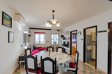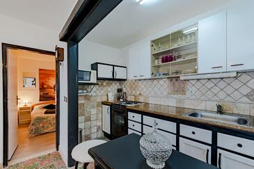 Ferienwohnung bietet Platz für 5 Gäste. Die Betten sind in Schlafzimmern, die es 2 gibt, und in Wohnzimmer, innerhalb einer Gesamtfläche von 44m2, angeordnet. Die Gäste haben eine eigene Terrasse zur Verfügung, auf der sie in warmen Sommernächten genießen können. Das Apartment bietet Meerblick. Es ist erlaubt, Speisen auf dem Gemeinschafts-Grill vorzubereiten.