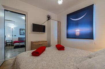 Ferienwohnung bietet Platz für 5 Gäste. Die Betten sind in Schlafzimmern, die es 2 gibt, und in Wohnzimmer, innerhalb einer Gesamtfläche von 44m2, angeordnet. Die Gäste haben eine eigene Terrasse zur Verfügung, auf der sie in warmen Sommernächten genießen können. Das Apartment bietet Meerblick. Es ist erlaubt, Speisen auf dem Gemeinschafts-Grill vorzubereiten.