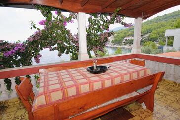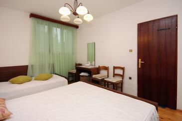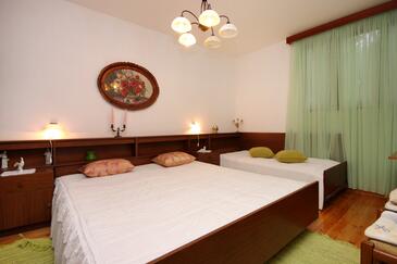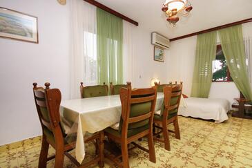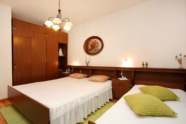 Ferienwohnung bietet Platz für 6 Gäste. Die Betten sind in Schlafzimmern, die es 2 gibt, und in Esszimmer, innerhalb einer Gesamtfläche von 51m2, angeordnet. Die Gäste haben eine eigene Terrasse zur Verfügung, auf der sie in warmen Sommernächten genießen können. Das Apartment bietet Meerblick. Es ist erlaubt, Speisen auf dem Gemeinschafts-Grill vorzubereiten.
