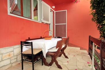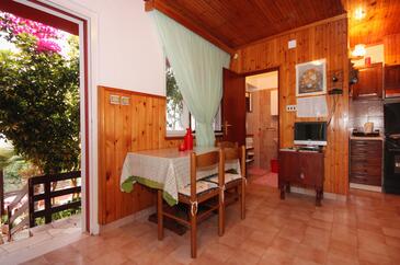 Ferienwohnung bietet Platz für 6 Gäste. Die Betten sind in Schlafzimmern, die es 2 gibt, und in Esszimmer, innerhalb einer Gesamtfläche von 51m2, angeordnet. Die Gäste haben eine eigene Terrasse zur Verfügung, auf der sie in warmen Sommernächten genießen können. Das Apartment bietet Meerblick. Es ist erlaubt, Speisen auf dem Gemeinschafts-Grill vorzubereiten.