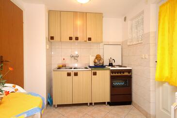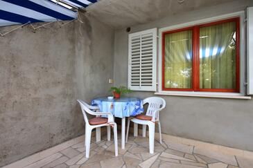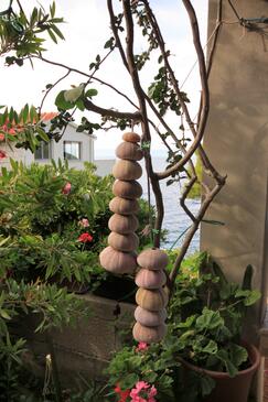 Ferienwohnung bietet Platz für 2 Gäste. Die Betten sind in Schlafzimmern, die es 1 gibt, innerhalb einer Gesamtfläche von 23m2, angeordnet. Die Gäste haben eine eigene Terrasse zur Verfügung, auf der sie in warmen Sommernächten genießen können. Das Apartment bietet Meerblick. Es ist erlaubt, Speisen auf dem Gemeinschafts-Grill vorzubereiten.