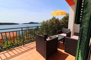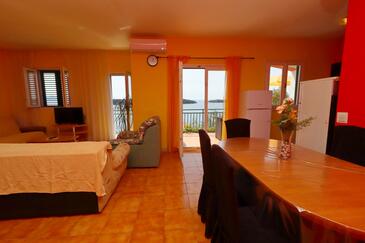 Ferienwohnung bietet Platz für 6 Gäste. Die Betten sind in Schlafzimmern, die es 3 gibt, innerhalb einer Gesamtfläche von 72m2, angeordnet. Die Gäste haben eine eigene Terrasse zur Verfügung, auf der sie in warmen Sommernächten genießen können. Das Apartment bietet Meerblick. Es ist erlaubt, Speisen auf dem Gemeinschafts-Grill vorzubereiten. In der Unterkunftseinheit besteht die Möglichkeit des Mitbringens von Haustieren gegen Aufpreis.