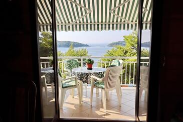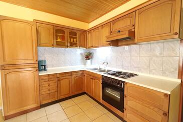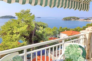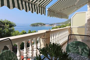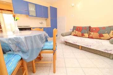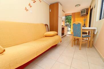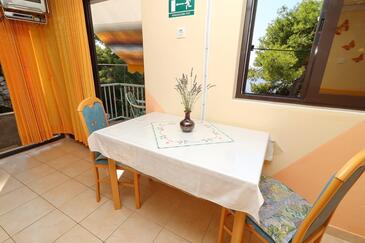 Ferienwohnung bietet Platz für 5 Gäste. Die Betten sind in Schlafzimmern, die es 2 gibt, innerhalb einer Gesamtfläche von 77m2, angeordnet. Die Gäste haben eine eigene Terrasse zur Verfügung, auf der sie in warmen Sommernächten genießen können. Das Apartment bietet Meerblick. Es ist erlaubt, Speisen auf dem Gemeinschafts-Grill vorzubereiten.